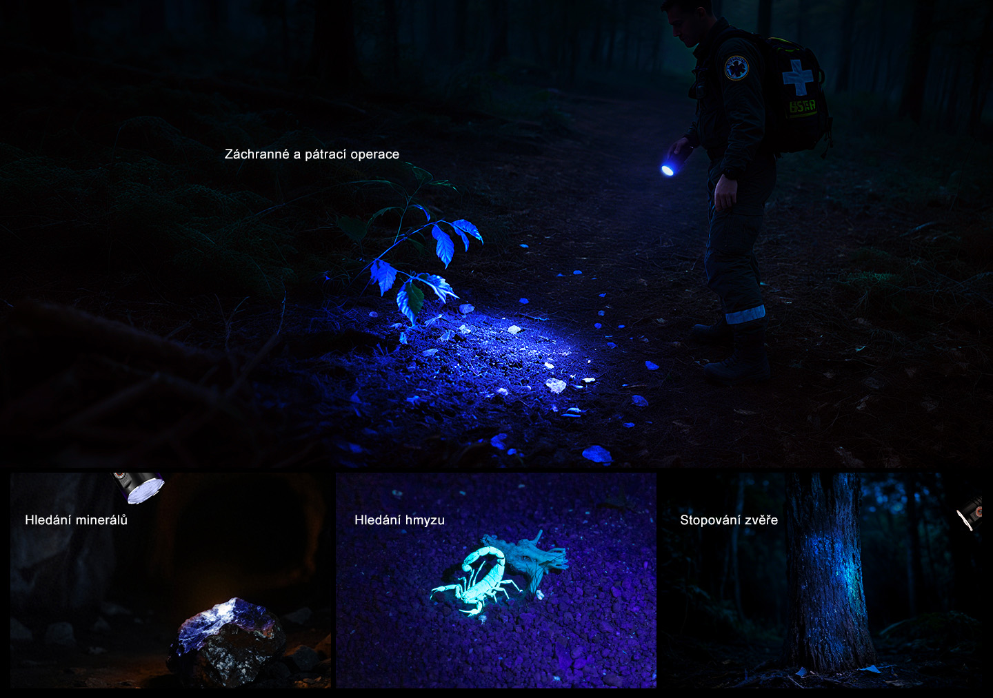 - Pro profesionální práci, kde je UV světlo denním chlebem, sáhněte po modelech WF25RM s jeho pohodlným nabíjením nebo po taktickém specialistovi TK25 UV s extrémně silným UV přísvitem.